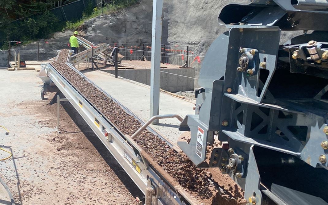 • Aluminum constructed high-performance portable conveyor with a 16" wide rubber chevron belt