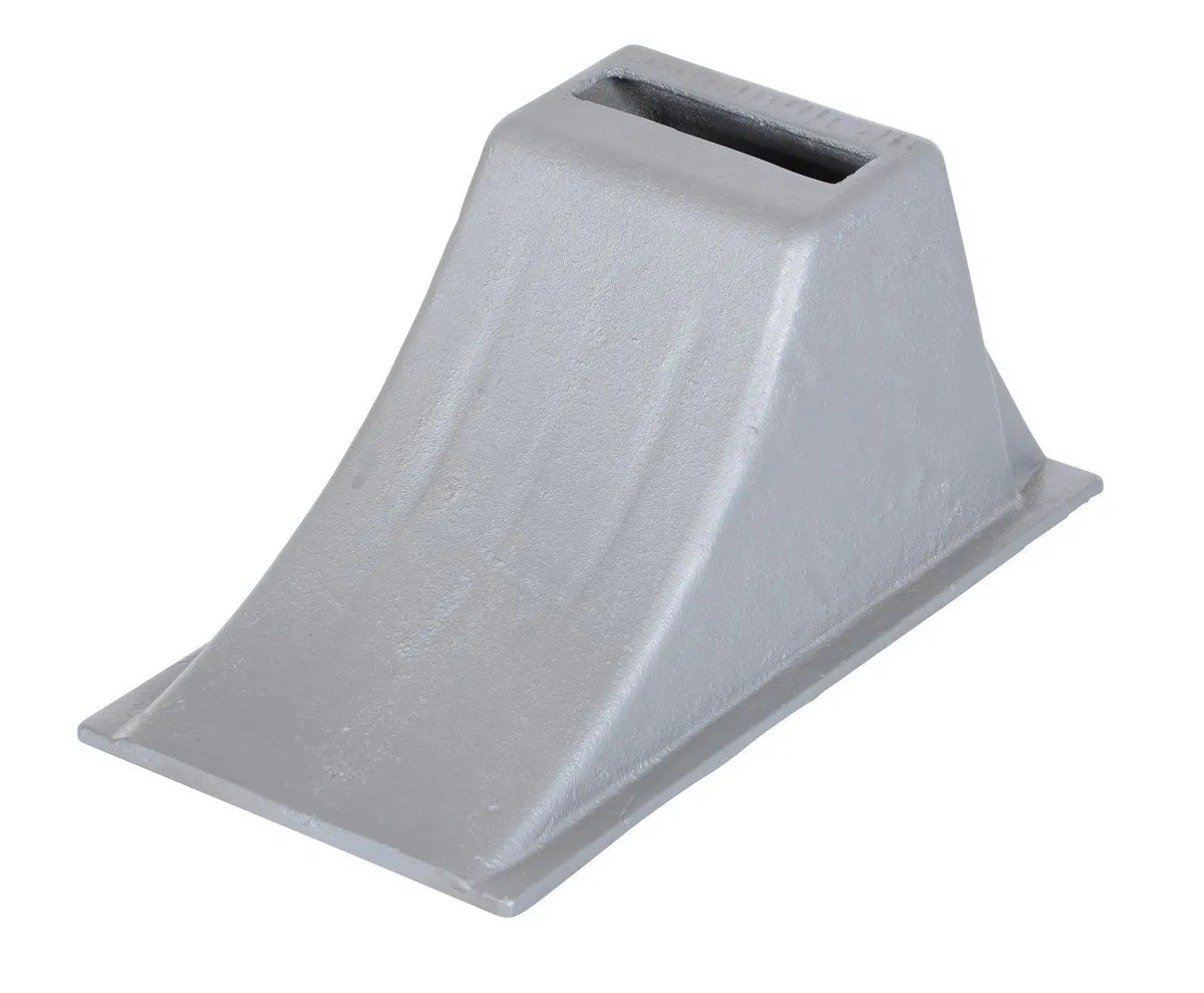This wheel chock touts superior holding power. Its slope design contours right to the truck wheel! Steel casting makes this wheel chock stronger than a standard wheel chock.