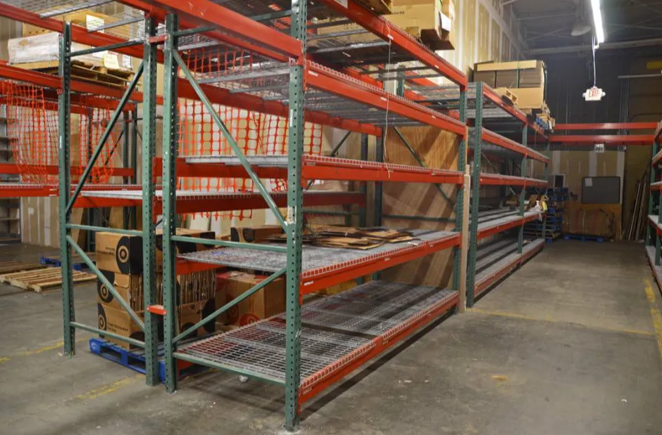 Pallet racks with wire decking are superior to particle board decking for many reasons. Fire safety is a top priority for choosing pallet racks. In a worst-case scenario, wire decking offers a flue effect, allowing fire and heat to reach the sprinklers on the ceiling and letting water drip from the top shelf all the way to the very bottom. Wire decking also does not gather dust like shelves do. We sell pallet racks pre-configured with wire decking as an easy-to-order option.